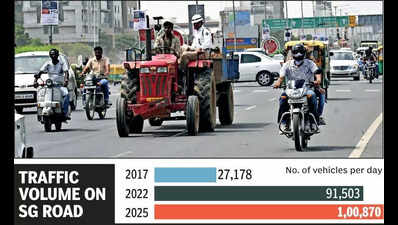 અમદાવાદ, 17 ફેબ્રુઆરી 2026: શહેરના પશ્ચિમ વિસ્તારમાં આવેલ SG Road પર છેલ્લા થોડા વર્ષોમાં વાહનવ્યવહારનો ભારે વધારો નોંધાયો છે. ટ્રાફિક વિભાગના તાજા આંકડા મુજબ, આ માર્ગ પર ટ્રાફિકમાં અંદાજે 271% જેટલો વધારો થયો છે, જેના પરિણામે અકસ્માતોની સંખ્યા પણ નોંધપાત્ર રીતે વધી રહી છે.