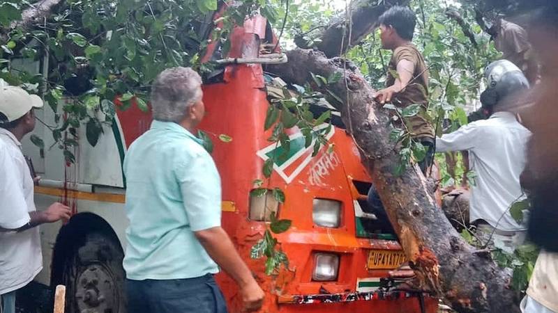 મુસાફરોથી ભરેલી બસ પર પડ્યું ઝાડ