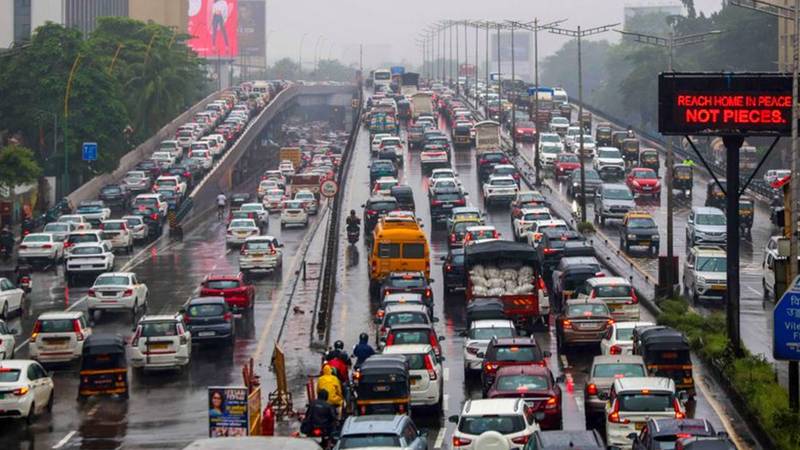 ભારે વરસાદ વચ્ચે વેસ્ટર્ન એક્સપ્રેસ હાઇવે પર ભારે ટ્રાફિક જામ છે. સતત વરસાદને કારણે રસ્તાઓ પાણીથી ભરાઈ ગયા છે અને ઘણી જગ્યાએ પાણી ભરાઈ જવાને કારણે વાહનો ધીમી ગતિએ ચાલી રહ્યા છે, જેના કારણે લોકોને ઘણી મુશ્કેલી પડી રહી છે.