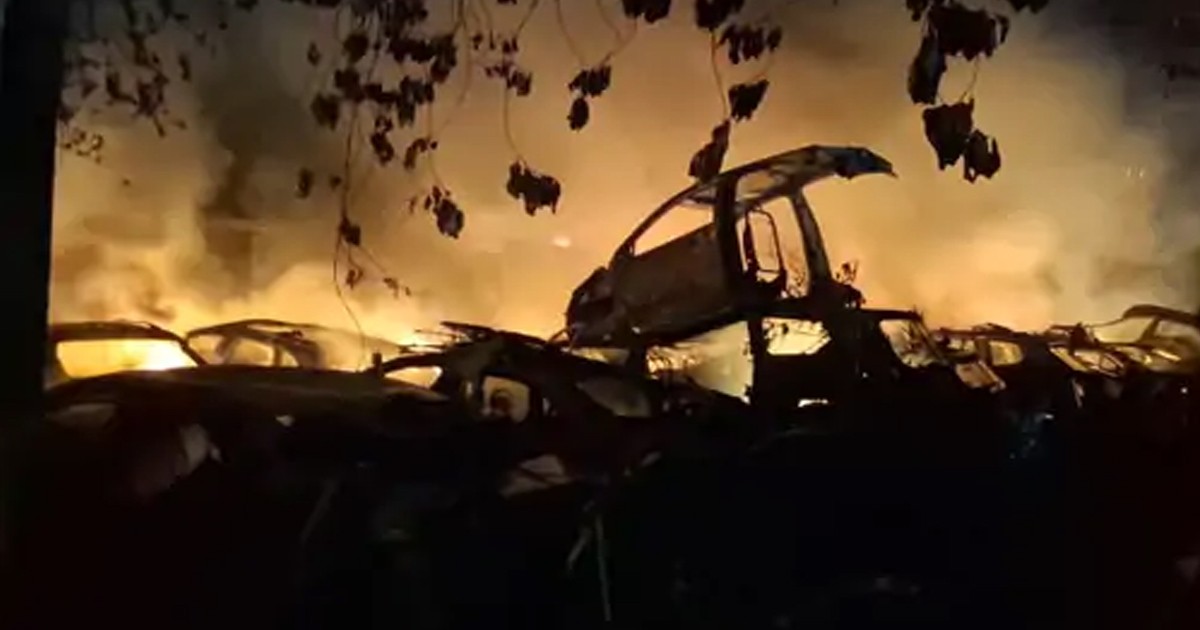 સુરત જિલ્લાના કામરેજ ટોલ પ્લાઝા નજીક આવેલ નેશનલ હાઈવે પર ગત રાત્રે એક ભયંકર આગની ઘટના સામે આવી છે. સ્થાનિક માહિતી મુજબ, વાહનોના પાર્ટ્સના ભંગારના એક ગોડાઉનમાં અચાનક આગ ફાટી નીકળી હતી. આગ એટલી વિકરાળ હતી કે ગોડાઉનની અંદર રહેલો મોટાભાગનો સામાન અને બહાર પાર્ક કરેલી 15થી વધુ કાર આગની લપેટમાં આવી ગઈ હતી અને સંપૂર્ણ રીતે બળીને ખાખ થઈ ગઈ હતી.