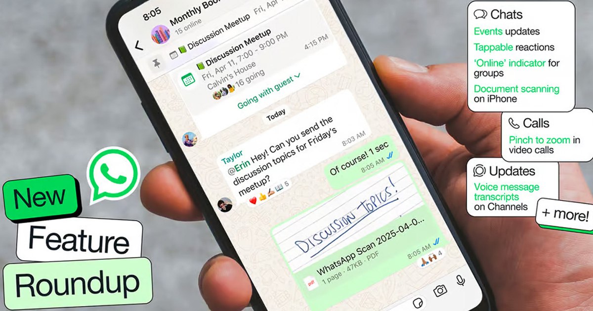 નવા અપડેટમાં ફિયરલેસ બર્ડ, સ્કૂલ ડેઝ અને વેકેશન જેવા સ્ટીકર પેક એડ કરવામાં આવ્યા છે. ગ્રુપ સર્ચ પણ હવે સરળ છે. જો તમને ગ્રુપનું નામ યાદ ન હોય, તો ફક્ત વ્યક્તિનું નામ શોધવાથી સામાન્ય ગ્રુપ્સ દેખાશે. એન્ડ્રોઇડ યુઝર્સ માટે ડોક્યુમેન્ટ સ્કેનિંગ ફીચર પણ બહાર પાડવામાં આવ્યું છે, જે સ્કેનિંગ, ક્રોપિંગ અને સીધા વોટ્સએપથી મોકલવાની મંજૂરી આપે છે.